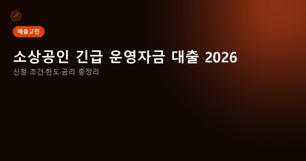 소상공인 긴급 운영자금 대출 2026 — 신청 조건·한도·금리 총정리